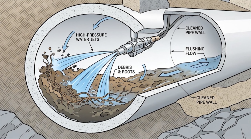 We use high-pressure water to clear out tough blockages, roots, and debris, restoring your sewer line's flow and preparing it for repair.